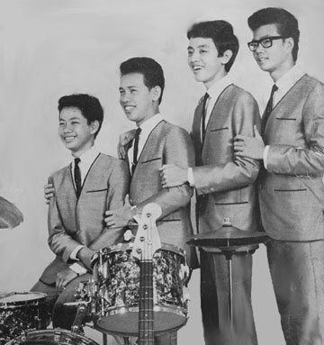 The Jets’ line-up consisted of Edward Tan (lead), Alan Poh (bass), Harold Chiang (rhythm) and Bertie Lim (drums). Richard Tan replaced Bertie just before The Jets recorded in 1965. This first EP featured four original instrumentals. Edward composed Aurora which stayed No. 1 on the chart for three weeks. In July they released their second EP with four more instrumentals which included the very popular Alice in dreamland. The Jets went through still more personnel change over time. In 1967, The Jets with Edward Tan released its third and final EP on the Blue Star label. The band brokeup the following year.